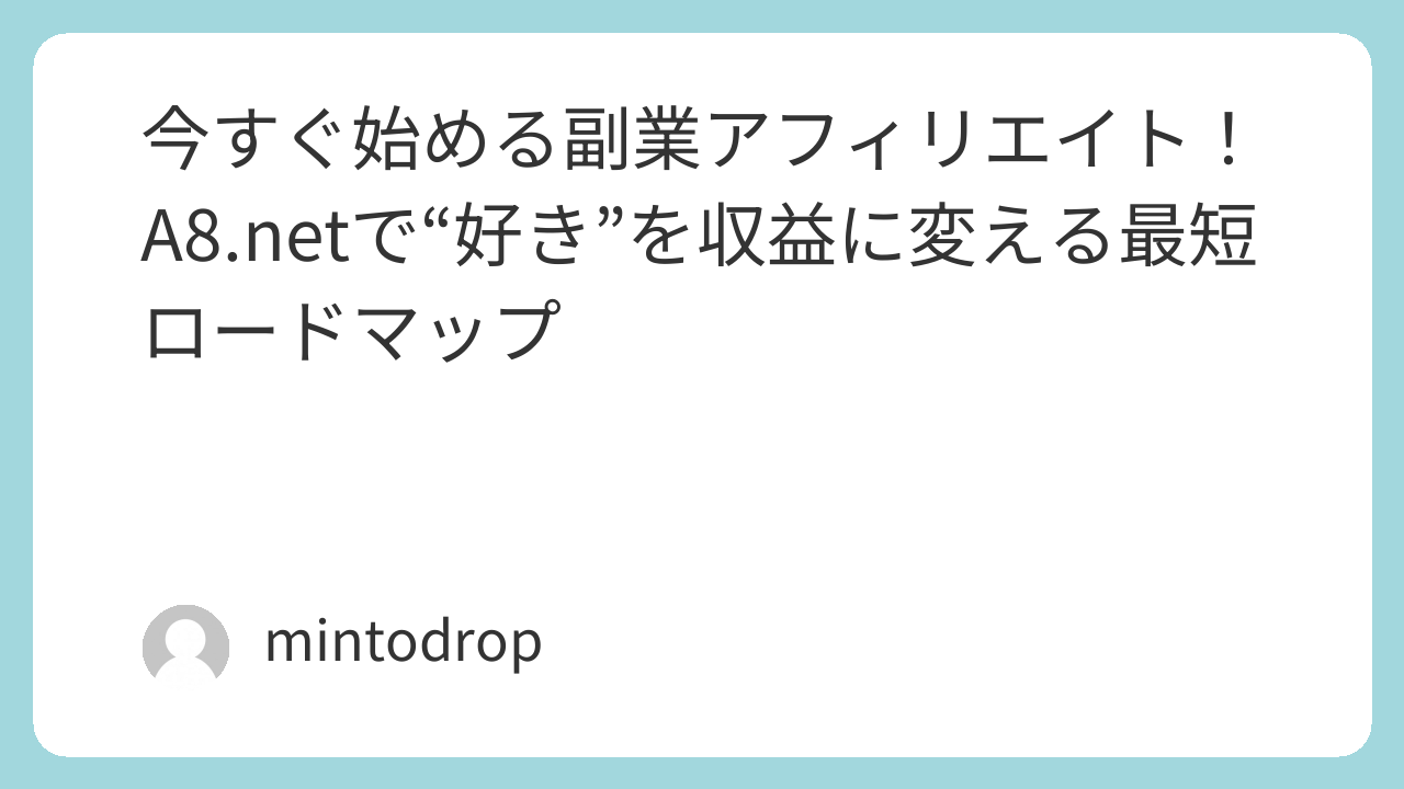 今すぐ始める副業アフィリエイト!A8.netで“好き”を収益に変える最短ロードマップ