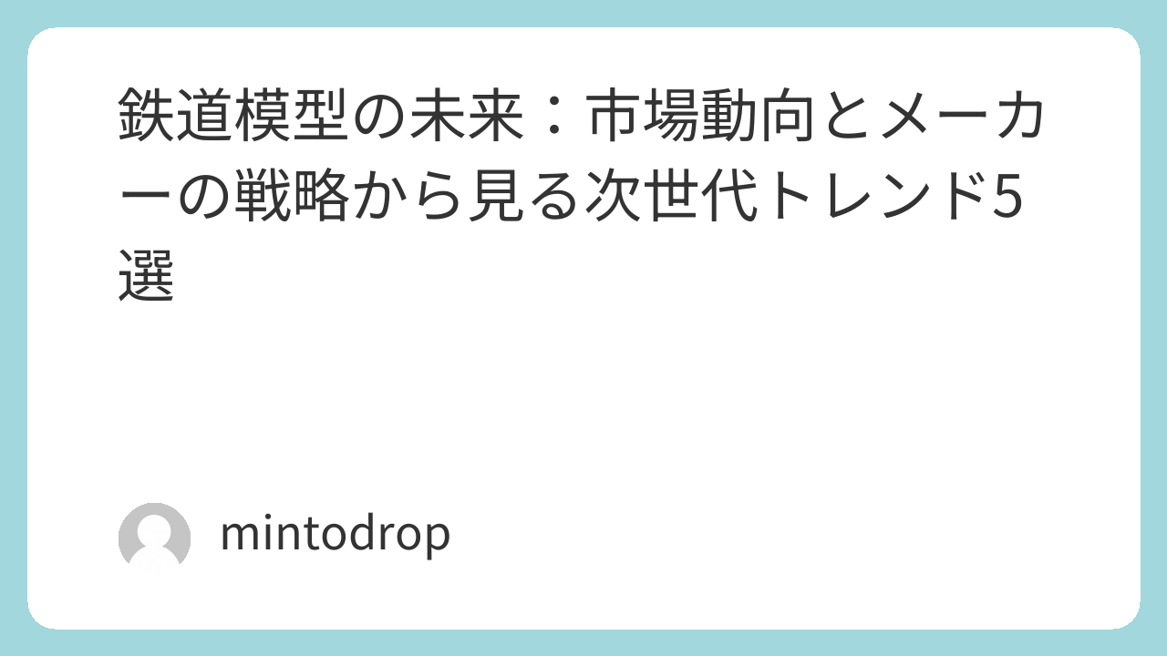 このトレンドは、鉄道模型の未来を「大手メーカー+クリエイターマーケット」が共に支える構造へと導いています。