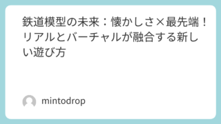 ユーザー自身が「作り手」「発信者」となり、市場やコミュニティと双方向に関わっていくことこそが、鉄道模型の未来をより豊かにしていく鍵と言えるでしょう。